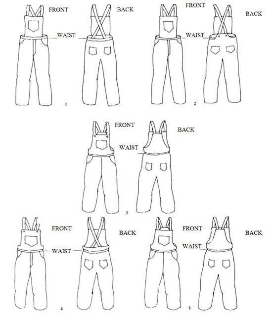 Ensembles : Jackets and blazers : Trousers, bib and brace overalls, breeches and shorts : This heading covers only men¡¯s or boy¡¯s knitted or crocheted suits and ensembles, jackets, blazers, trousers, breeches and shorts (other than swimwear) and bib and brace type overalls.(A) For the purposes of Chapter Note 3 (a), it should be noted that : (a) the "suit coat or jacket" designed to cover the upper part of the body has a full front opening without a closure or with a closure other than a slide fastener (zipper). It does not extend below the mid-thigh area and is not for wear over another coat, jacket or blazer; (b) the "panels" (at least two in front and two at the back) making up the outer shell of the suit coat or jacket must be sewn together lengthwise. For this purpose the term "panels" does not include sleeves, facings or collar, if any; (c) a "tailored waistcoat", whose front is made from the same fabric as the outer surface of the other components of the set and whose back is made from the same fabric as the lining of the suit coat or jacket, may also be included in the set. All of the components of a "suit" must be of the same fabric construction, colour and composition; they must also be of the same style and of corresponding or compatible size. However, these components may have piping (a strip of fabric sewn into the seam) in a different fabric. If several separate components to cover the lower part of the body are presented together (e.g., two pairs of trousers or trousers and shorts), the constituent lower part shall be one pair of trousers, the other garments being considered separately. For the purposes of Chapter Note 3 (a), the expression "identical fabric" means a single identical fabric, i.e., the fabric must be : - of the same construction, i.e., it must be obtained by the same yarn-bonding technique (having the same stitch size) and the structure and measurement (e.g., the decitex number) of the yarns used must also be the same; - of the same colour (even the same shade and pattern of colour); this includes fabrics of different-coloured yarns and printed fabrics; - of the same composition, i.e., the percentage of the textile materials used (e.g., 100 % by weight of wool, 51 % by weight of synthetic fibres, 49 % by weight of cotton) must be the same. (B) The term "men¡¯s or boys¡¯ ensemble" means a set of garments (other than suits and articles of heading 61.07, 61.08 or 61.09), composed of several pieces made up in identical fabric, put up for retail sale, and comprising : one garment designed to cover the upper part of the body, with the exception of pullovers which may form a second upper garment in the sole context of twin sets, and of waistcoats which may also form a second upper garment, and one or two different garments, designed to cover the lower part of the body and consisting of trousers, bib and brace overalls, breeches or shorts (other than swimwear). All of the components of an ensemble must be of the same fabric construction, style, colour and composition; they also must be of corresponding or compatible size. The term "ensemble" does not apply to track suits and ski suits, of heading 61.12 (see Chapter Note 3 (b)). In addition : (C) The "jackets or blazers" have the same characteristics as the suit coats and suit jackets described in Chapter Note 3 (a) and in Part (A) above, except that the outer shell (exclusive of sleeves, and facings or collar, if any) may consist of three or more panels (of which two are at the front) sewn together lengthwise. The heading does not, however, include anoraks, wind-cheaters, ski-jackets and similar garments of heading 61.01 or 61.02. (D) "Trousers" means garments which envelop each leg separately, covering the knees and usually reaching down to or below the ankles; these garments usually stop at the waist; the presence of braces does not cause these garments to lose the essential character of trousers. (E) "Bib and brace overalls" means garments of the type illustrated below in figures 1 to 5 and similar garments which do not cover the knee. (F) "Shorts" means "trousers" which do not cover the knee. The heading does not include :(a) Tailored waistcoats presented separately (heading 61.10). (b) Track suits, ski suits and swimwear (heading 61.12).