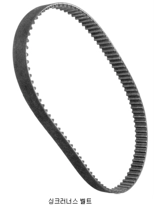 ÀÌ È£¿¡´Â ÄÁº£À̾î¿ëÀ̳ª Àüµ¿(transmission)¿ëÀÇ º§Æ®(belt)¿Í º§ÆÃ(belting)À¸·Î¼ °¡È²ÇÑ °í¹«¸¸À¸·Î µÇ¾î Àְųª °í¹«¸¦ ħÅõ¡¤µµÆ÷¡¤ÇǺ¹¡¤ÀûÃþÇÑ ¹æÁ÷¿ë ¼¶À¯Á÷¹°·Î ¸¸µç °ÍÀ̳ª °í¹«¸¦ ħÅõ¡¤µµÆ÷¡¤ÇǺ¹¡¤½ÃµåÇÑ(sheathed) ¹æÁ÷¿ë ¼¶À¯½Ç(textile yarn)À̳ª ²ö(cord)À¸·Î ¸¸µç °Í(ÀÌ ·ùÀÇ ÁÖ Á¦8È£ ÂüÁ¶)À» ºÐ·ùÇÑ´Ù. ÀÌ È£¿¡´Â ¶ÇÇÑ À¯¸® ¼¶À¯Á÷¹°¡¤À¯¸®¼¶À¯·Î º¸°ÇÏ¿´°Å³ª ±Ý¼Ó¼±À¸·Î µÈ õ(cloth)À¸·Î º¸°ÇÑ °¡È²ÇÑ °í¹«·Î ¸¸µç º§Æ®¿Í º§ÆÃµµ ºÐ·ùÇÑ´Ù. º§Æ®(belt)¿Í º§ÆÃ(belting)[°¡È²ÇÑ °í¹«¸¸À¸·Î ¸¸µç º§Æ®³ª º§ÆÃÀº Á¦¿ÜÇÑ´Ù]Àº º¸Åë ¸î °ãÀÇ Á÷¹°ÀûÃþ(°í¹« °¡°øµÇ¾ú´ÂÁö¿¡ »ó°ü¾ø´Ù. ¿¹: À§»ç¿Í °æ»ç·Î µÈ Á÷¹°¡¤¸Þ¸®¾ß½º Æí¹°À̳ª ¶ß°³Áú Æí¹°¡¤ÆòÇà»çÀÇ ÀûÃþ)À¸·Î ¸¸µç īĿ½º(carcass)³ª ÀüºÎ °¡È²ÇÑ °í¹«·Î ÇǺ¹ÇÑ Ã¶°Á¦ ÄÉÀ̺íÀ̳ª ½ºÆ®¸³À¸·Î µÇ¾î ÀÖ´Ù. ÀÌ È£¿¡´Â ÀÏÁ¤ÇÑ ±æÀÌ·Î ÀÌ¹Ì Àý´ÜµÈ º§Æ®(belt)[³¡°ú ³¡À» Á¢ÇÕÇϰųª ÆÄ½º³Ê(fastener)·Î °íÂø½ÃÄ×´ÂÁö¿¡ »ó°ü¾ø´Ù]´Â ¹°·Ð ÀÏÁ¤ÇÑ ±æÀÌÀÇ º§ÆÃ(belting)(±× ÈÄ¿¡ ÀÏÁ¤ÇÑ ±æÀÌ·Î Àý´ÜÇϱâ À§ÇÑ °Í)À» Æ÷ÇÔÇϸç; ¿£µå¸®½º(endless) º§Æ®µµ Æ÷ÇÔÇÑ´Ù. ÀÌ·¯ÇÑ ¹°Ç°Àº ¸ðµÎ Á÷»ç°¢Çü¡¤»ç´Ù¸®²ÃÇü[ºêÀ̺§Æ®(V-belt)¿Í ºêÀ̺§ÆÃ(V-belting)]¡¤¿øÇüÀ̳ª ±× ¹ÛÀÇ È¾´Ü¸éÀ¸·Î µÇ¾î ÀÖ´Ù. »ç´Ù¸®²ÃÇü Ⱦ´Ü¸éÀÇ º§Æ®(belt)³ª º§ÆÃ(belting)Àº À̵éÀÇ ¹°Ç° Ⱦ´Ü¸é¿¡ Çϳª ÀÌ»óÀÇ "ºêÀÌ(¥´)" ¸ð¾çÀ» °¡Áö°í ÀÖ´Ù. "ºêÀÌ(¥´)"Ç¥¸éÀº À¯¿ëÇÑ ½û±â(wedging) ÀÛ¿ëÀ» ÇÏ´Â °Í°ú ÃÖ¼Ò ¹Ì²ô·¯ÁüÀ» À§ÇÏ¿© ÇÑÂÊ ¸é¿¡ ½Ãºê(sheave)°¡ ÁغñµÇµµ·Ï µðÀÚÀÎµÈ °ÍÀÌ´Ù. ÀÌ ¹üÁÖ¿¡´Â ¿¹·Î½á, ´ÙÀ½°ú °°Àº Ⱦ´Ü¸éÀ» °¡Áö´Â º§Æ®³ª º§ÆÃÀ» Æ÷ÇÔÇÑ´Ù.(A) ´ÜÀÏ »ç´Ù¸®²Ã ÇüÀÇ °Í (B) ¸ÂÀºÆí¿¡ »ç´Ù¸®²Ã ÇüÀÇ °Í (C) °°Àº ¸é¿¡ µÑ ÀÌ»óÀÇ »ç´Ù¸®²ÃÇüÀÇ °Í[ºêÀÌȨ(¥´)ÀÌ ÆÐÀÎ °Í] ºêÀÌ(¥´)ȨÀÌ ÆÐÀÎ º§Æ®´Â ¸¶Âû¿¡ ÀÇÇØ¼ ¸ð¾çÀÌ ºñ½ÁÇÑ µµ¸£·¹ÀÇ È¨°ú ¸Â¹°¸®°í ȨÀ» Àâ¾ÆÁÖ´Â, ¼¼·Î¹æÇâÀ¸·Î ÆÐÀÎ ¸¶Âû¸éÀÌ ÀÖ´Â ¿£µå¸®½º(endless) º§Æ®ÀÌ´Ù. ºêÀÌ(¥´)ȨÀÌ ÆÐÀÎ º§Æ®´Â ºêÀ̺§Æ®(V-belt)ÀÇ ÇÑ ÇüÅÂÀÌ´Ù. ºêÀ̺§Æ®(V-belt)³ª º§ÆÃ(belting)¿¡¼ Ȩ(groove)(ÁÖÇüÀ¸·Î Ç߰ųª¡¤Àý´ÜÇÑ °Í)Àº ¾Ð¹ÚÀ» °¨¼ÒÇϰųª¡¤±Þ¼ÓÇÑ ±ÁÈûÀ¸·ÎºÎÅÍ ¿ÀÇ ¹ß»ç¸¦ µµ¿ÍÁØ´Ù. À̰ÍÀÇ Æ¯È÷ Áß¿äÇÑ °ÍÀº °í¼ÓÀ¸·Î ±¸µ¿ÇÏ´Â Áß¿¡´Â º§Æ®°¡ ÀÛÀº ½Ãºê(sheave)·ÎºÎÅÍ ¹þ°ÜÁö´Â °ÍÀ» ¸·¾ÆÁÖ´Â ¿ªÇÒÀ» ÇÑ´Ù. ¼¼·Î¹æÇâÀÇ È¨À» Á¦¿ÜÇÑ È¨Àº ºêÀ̺§Æ®³ª º§ÆÃÀÇ Ç°¸ñºÐ·ù¿¡ ¿µÇâÀ» ¹ÌÄ¡Áö´Â ¾Ê´Â´Ù. ½ÌÅ©·¯³Ê½ºº§Æ®(synchronous belt)(±×¸² ÂüÁ¶)´Â ½Ãºê(sheave) »çÀÌ¿¡¼ ÀÏÁ¤ÇÑ È¸Àü °ü°è¸¦ À¯ÁöÇϰí ÀÖ´Â µ¿¾È ÈûÀ» Àü´ÞÇϵµ·Ï ¼³°èÇÏ¿´´Ù. ¿Ï¼ºÇ°Àº ÈçÈ÷, ŸÀֺ̹§Æ®(timing belt)·Î ´Ü¼øÈ÷ ÀÏÄþîÁø´Ù. Åé´Ï ¸ð¾çÀÇ ½Ãºê·Î ºÎµå·´°Ô ÀÛµ¿Çϵµ·Ï ´ë°³ º§Æ®(belt)ÀÇ ¾ÈÂÊ ¾ç¸é À§¿¡´Â VÀÚÇü Åé´Ï ¸ð¾çÀÇ ³ëÄ¡(notch)°¡ ÀÖ´Ù. ½ÌÅ©·¯³Ê½º º§Æ®³ª º§ÆÃÀº »ç´Ù¸®²ÃÇü Ⱦ´Ü¸éÀ» °¡Áö°í ÀÖÁö ¾Ê´Ù. ÀÌ È£ÀÇ º§Æ®´Â ½½¸®ºê(sleeve)(°ü) ¸ð¾çÀ¸·Î Á¦½ÃÇϱ⵵ Çϴµ¥ ÀÌ ½½¸®ºê¿¡¼ ¿Ï¼º ǰ¸ñÀ¸·Î Àý´ÜµÉ ¼ö°¡ ÀÖÀ¸¸ç; ÀÌ ¸ð¾çÀº ºÐ·ù¿¡ ¿µÇâÀ» ¹ÌÄ¡Áö ¾Ê´Â´Ù. ÄÁº£À̾î¿ëÀ̳ª Àüµ¿(transmission)¿ëÀÇ º§Æ®(belt)³ª º§ÆÃ(belting)Àº ±â°è³ª ±â±â(±â°è³ª ±â±â¿¡ ÀåÄ¡µÇ¾ú´ÂÁö¿¡ »ó°ü¾ø´Ù)¿Í ÇÔ²² Á¦½ÃÇÏ¸é ±× ±â°è³ª ±â±âÀÇ ÇØ´ç ¼¼¹ø¿¡ ºÐ·ùÇÑ´Ù(¿¹: Á¦16ºÎ).